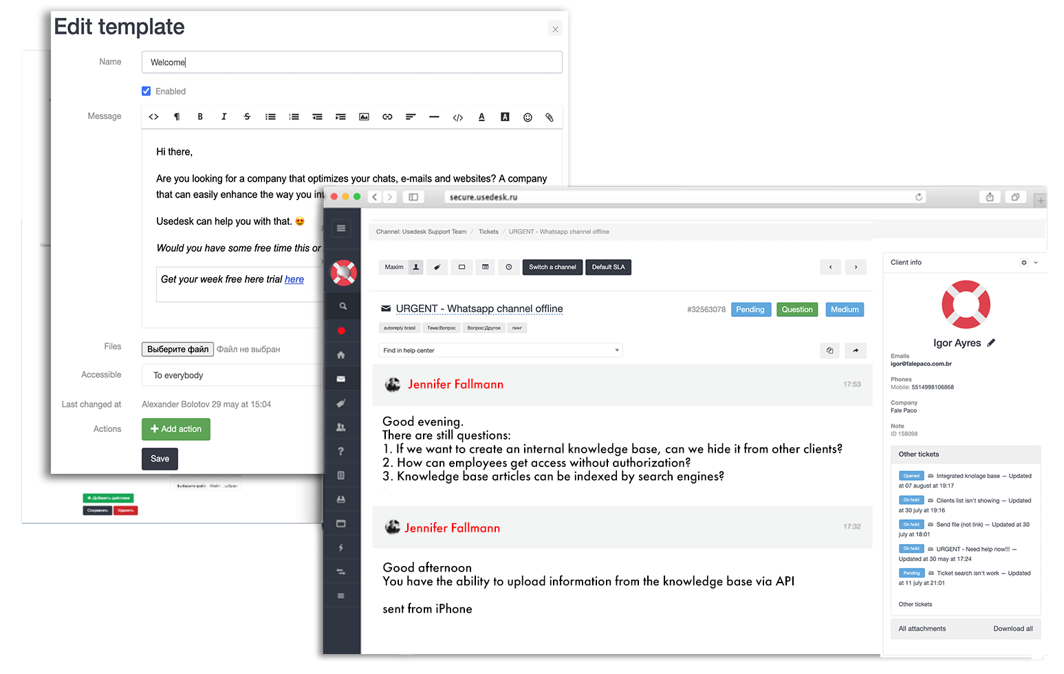 Con la conexión de UseDesk, el centro de atención al cliente de la empresa, finalmente se ha vuelto centralizado, mientras que para el departamento de ventas ha sido posible rastrear los diálogos y captar nuevos clientes sin perder tiempo ni datos.