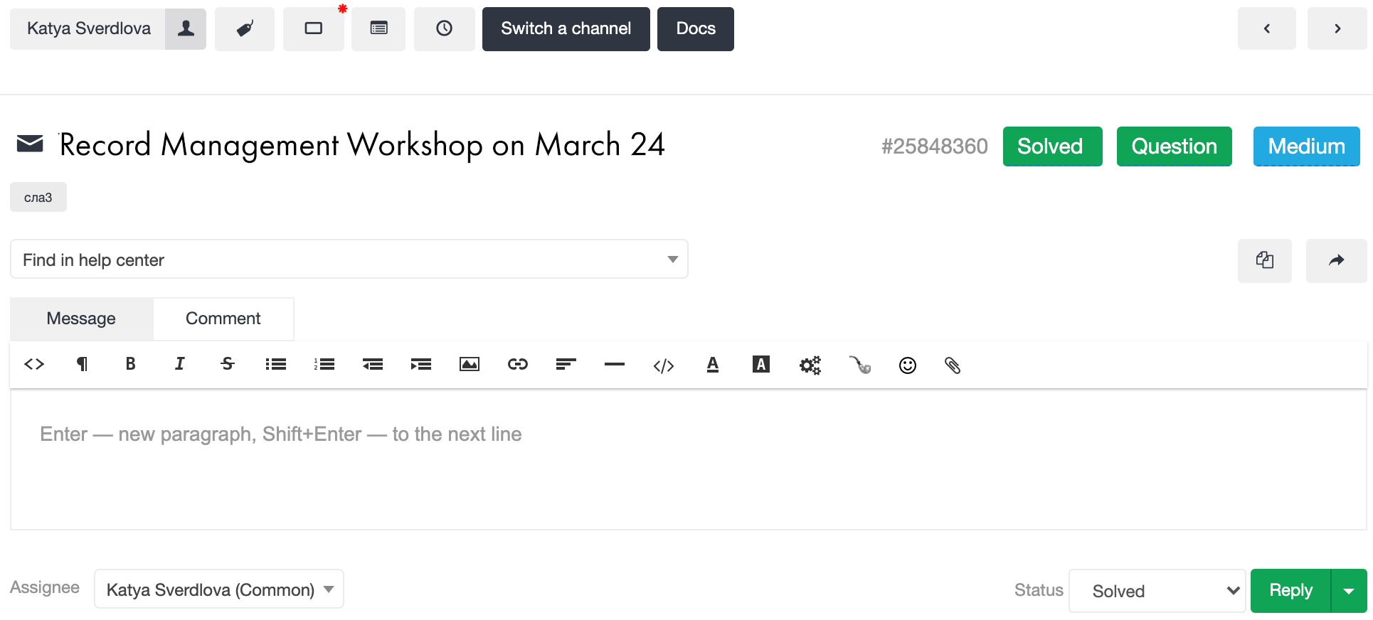 Todas las peticiones entran en el mismo sistema donde son automáticamente distribuidas entre los responsables, con prioridades y plazos de respuesta ya indicados. Esto facilita inmensamente el trabajo mientras que las plantillas de respuesta y base de conocimiento hacen la vida más fácil.