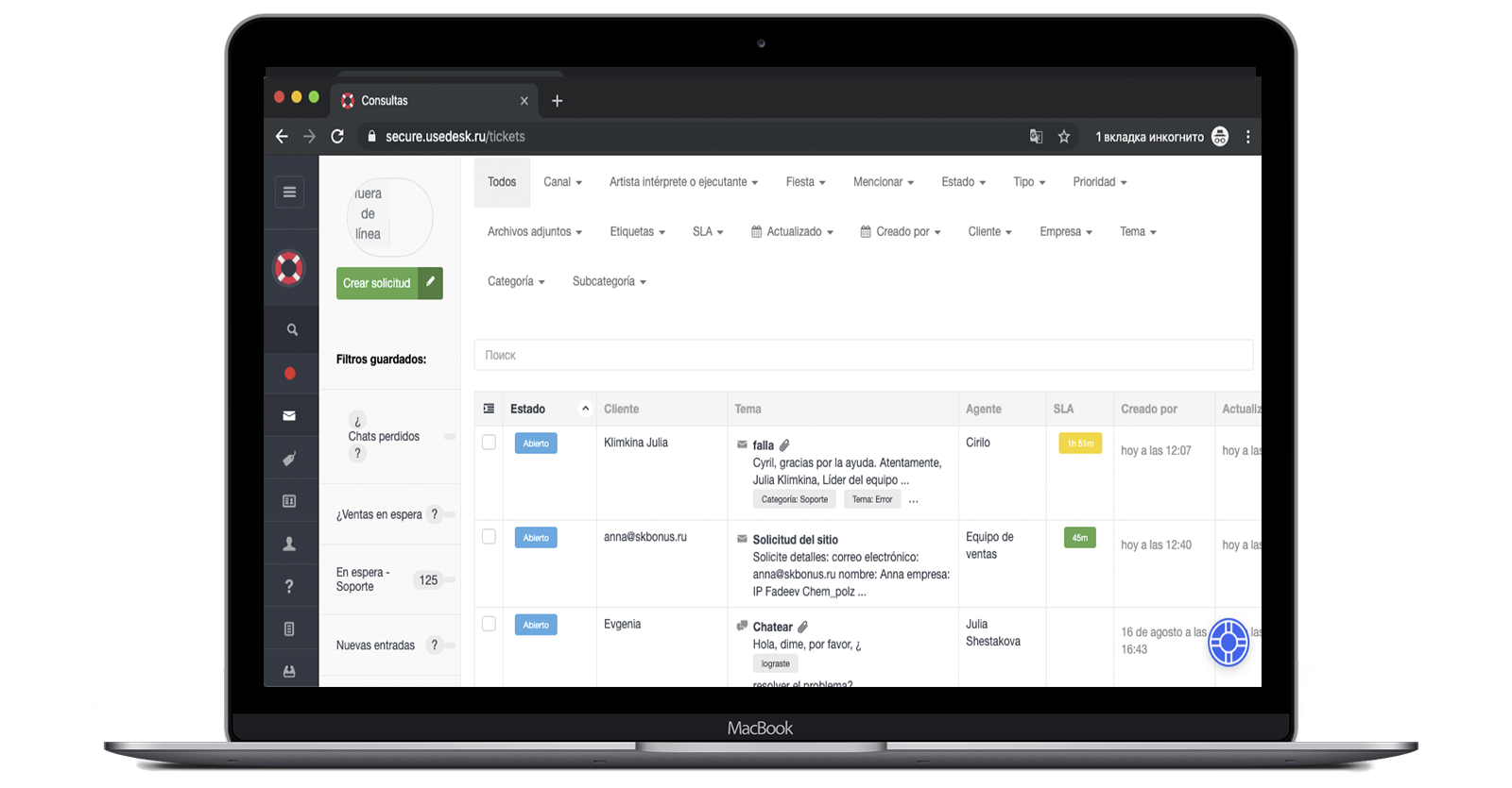 Usedesk ayuda a organizar la ayuda y el apoyo inmediatos a los usuarios en cuestiones de cualquier complejidad: incidentes, problemas, aclaraciones, preguntas sobre el producto, quejas. Vea cómo puede usar Usedesk para mejorar su experiencia como cliente.